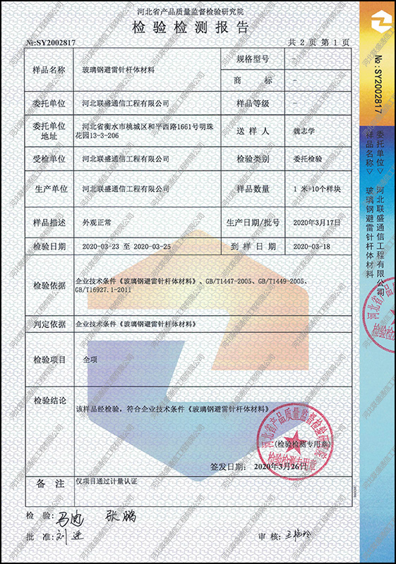 河北聯盛通信工程有限公司是一家從事玻璃鋼避雷針研發、機場易折易碎桿研發、銷售飛機通信導航定向設備、航用通信導航定向設備、地面通信導航定向設備、飛機場用電氣信號裝置的生產廠家。主要產品有:玻璃鋼避雷針、機場FOD易折易碎塔架、機場雷達站玻璃鋼易折桿避雷針、機場風向標易折桿、雷達塔架、避雷塔(GFL全系列、GFW全系列、GH全系列、GJT全系列)、通信塔、瞭望塔、監控塔、工藝塔、異形鋼結構產品等研發、生產、銷售為一體的專業性企業。我公司現有員工89人,公司下設有工程安裝部、技術部、生產部、業務部、財務部、售后服務部等部門,廠區占地面積6200平方米。公司擁有**的生產設備和專業施工隊伍,使我們能夠快速....
